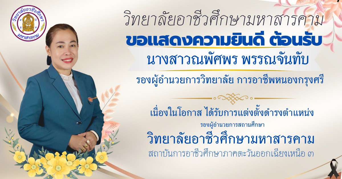 ขอแสดงความยินดี ต้อนรับกับ นางสาวณพัศพร พรรณจันทับ รองผู้อำนวยการวิทยาลัย