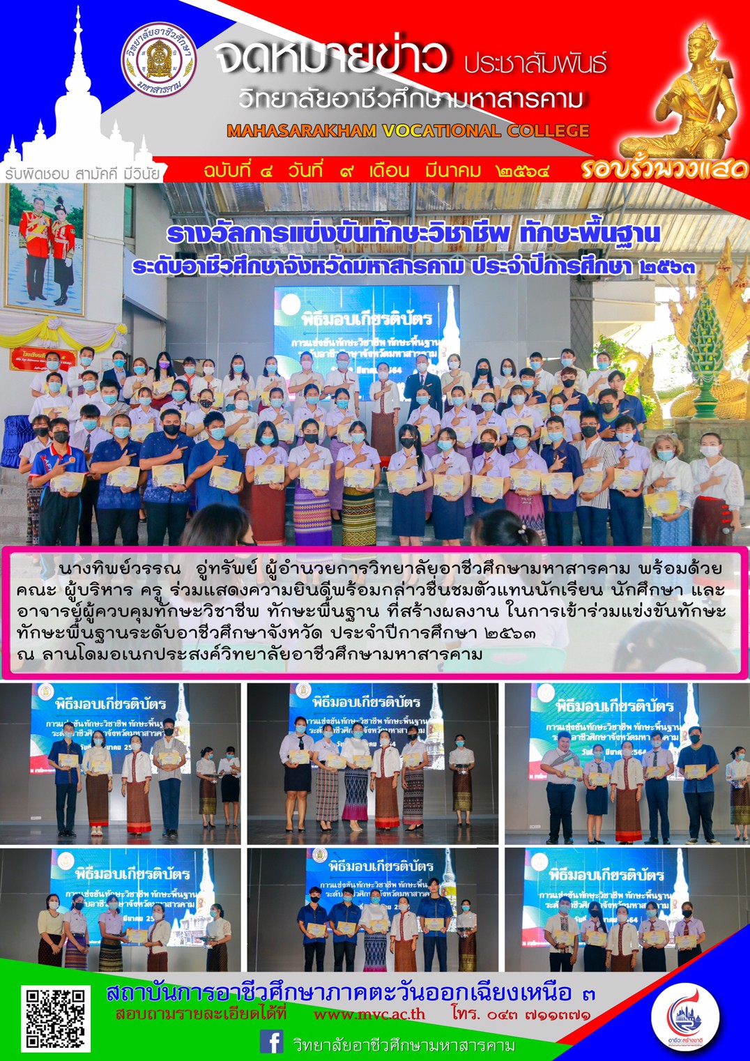 รางวัลการแข่งขันทักษะวิชาชีพ ทักษะพื้นฐาน ระดับอาชีวศึกษาจังหวัดมหาสารคาม ประจำปีการศึกษา ๒๕๖๓ 09/03/2564Chanon Authaisomจดหมายข่าว