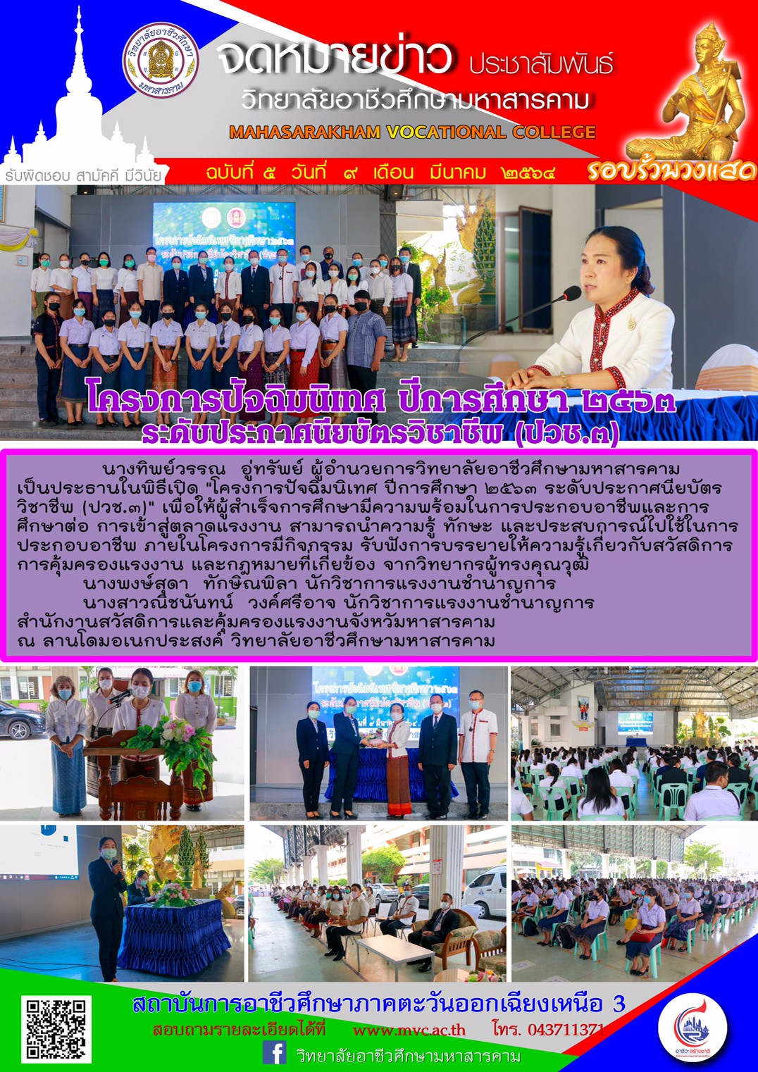 โครงการปัจฉิมนิเทศ ปีการศึกษา ๒๕๖๓ ระดับประกาศนียบัตรวิชาชีพ (ปวช.๓) 10/03/2564Chanon Authaisomจดหมายข่าว